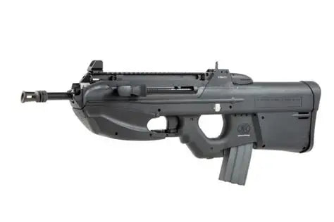 The FN Herstal Licensed FN2000 Airsoft AEG Rifle offers a unique and authentic airsoft experience, replicating the distinctive design of the real FN2000 rifle used by military and law enforcement units. This licensed replica is a testimony to its attention to detail. The rifle is powered by an electric gearbox, providing reliable and consistent firing performance. Its bullpup configuration results in a compact overall length while maintaining a longer barrel for improved accuracy. The integrated optic and carrying handle adds to its futuristic aesthetics and practicality. The adjustable stock enhances comfort and adaptability, while the ambidextrous controls cater to different user preferences. With its officially licensed design and functional features, the FN Herstal Licensed FN2000 Airsoft AEG Rifle stands as a sought-after choice for airsoft enthusiasts desiring a blend of realism and high-quality performance on the field. The FN F2000 is a modular bullpup assault rifle designed by Belgian firearm manufacturer FN Herstal from 1995 o 2001 and released in 2001. The F2000 shoots 5.56 x 45mm NATO and its safety/selector and trigger mechanisms are the same as the FN P90.